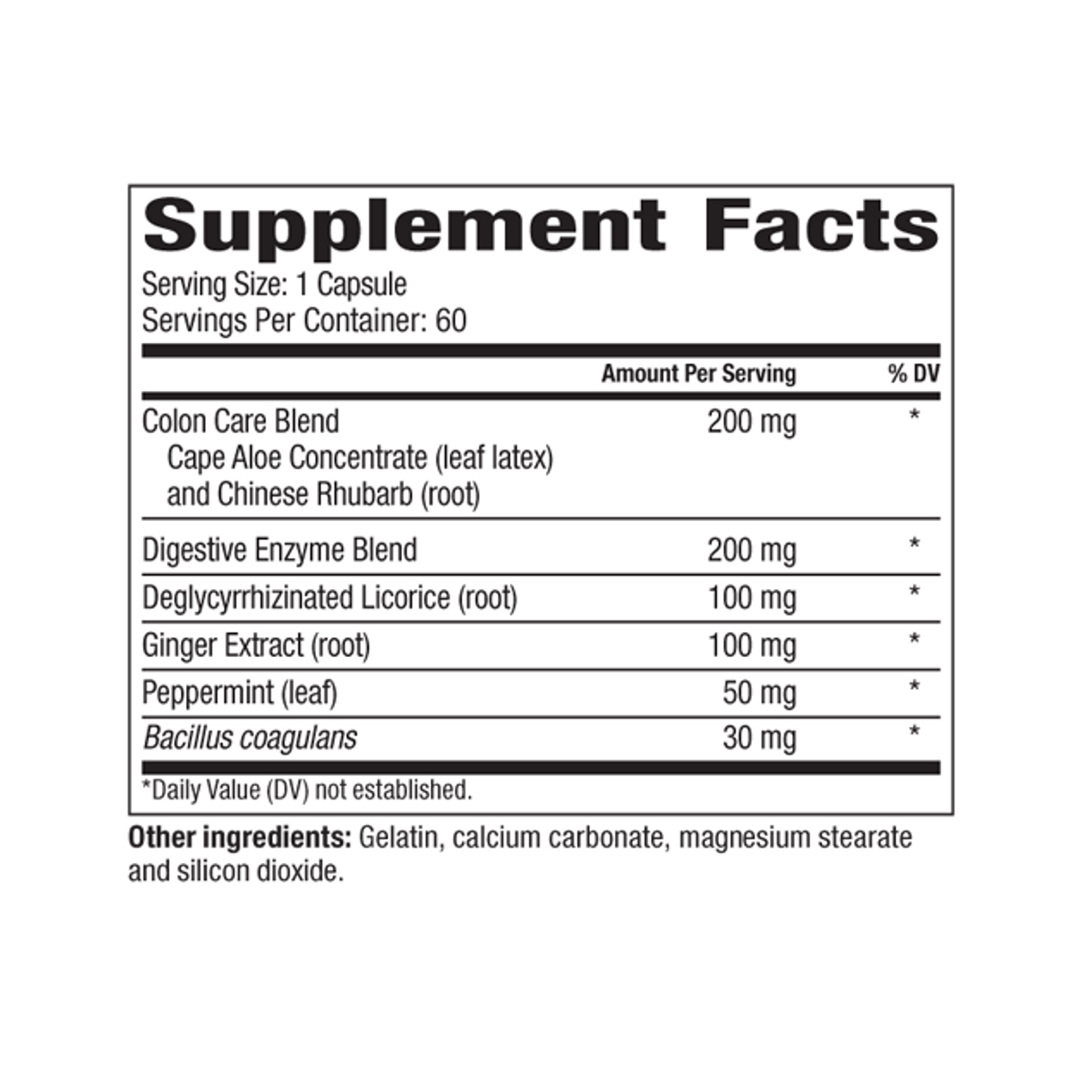 Other Ingredients: Gelatin, calcium carbonate, magnesium stearate and silicon dioxide.